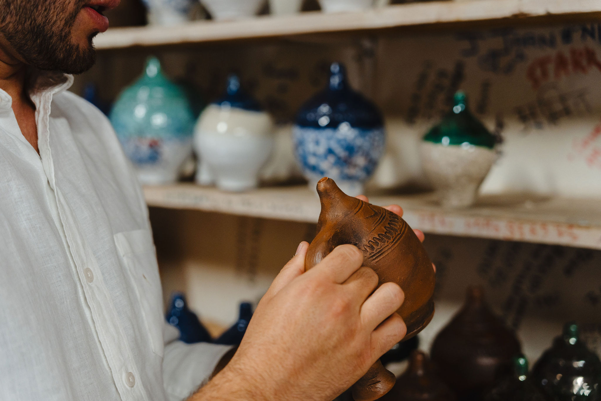 Unique ceramics made with the special talent of the potter Manolis Libertas in the village of Damalas. A wonderful art that reached Manolis from grandfather to grandfather and its roots are lost in the late 19th century.